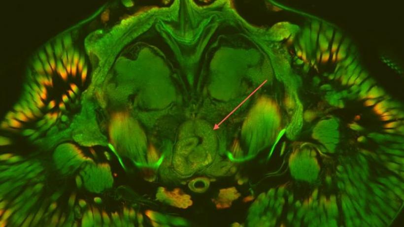 • Cross-section of the head of an ant infected with the trematode Dicrocoelium dendriticum.