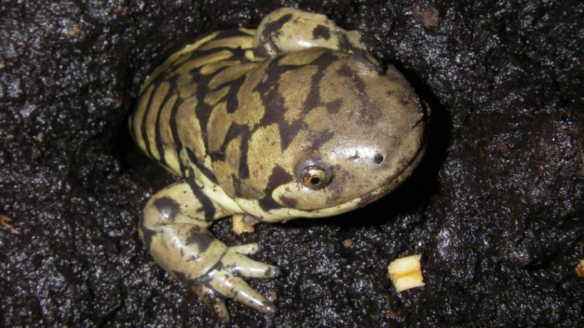 • Leopard frog with an extra hindlimb caused by infection with the trematode Ribeiroia sp.
