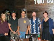 Today, Justin successfully defended his MSc thesis. This is some of the lab at our go-to place in town, Two Guys & A Pizza Place. Well done Justin, although now we have to get the papers submitted!